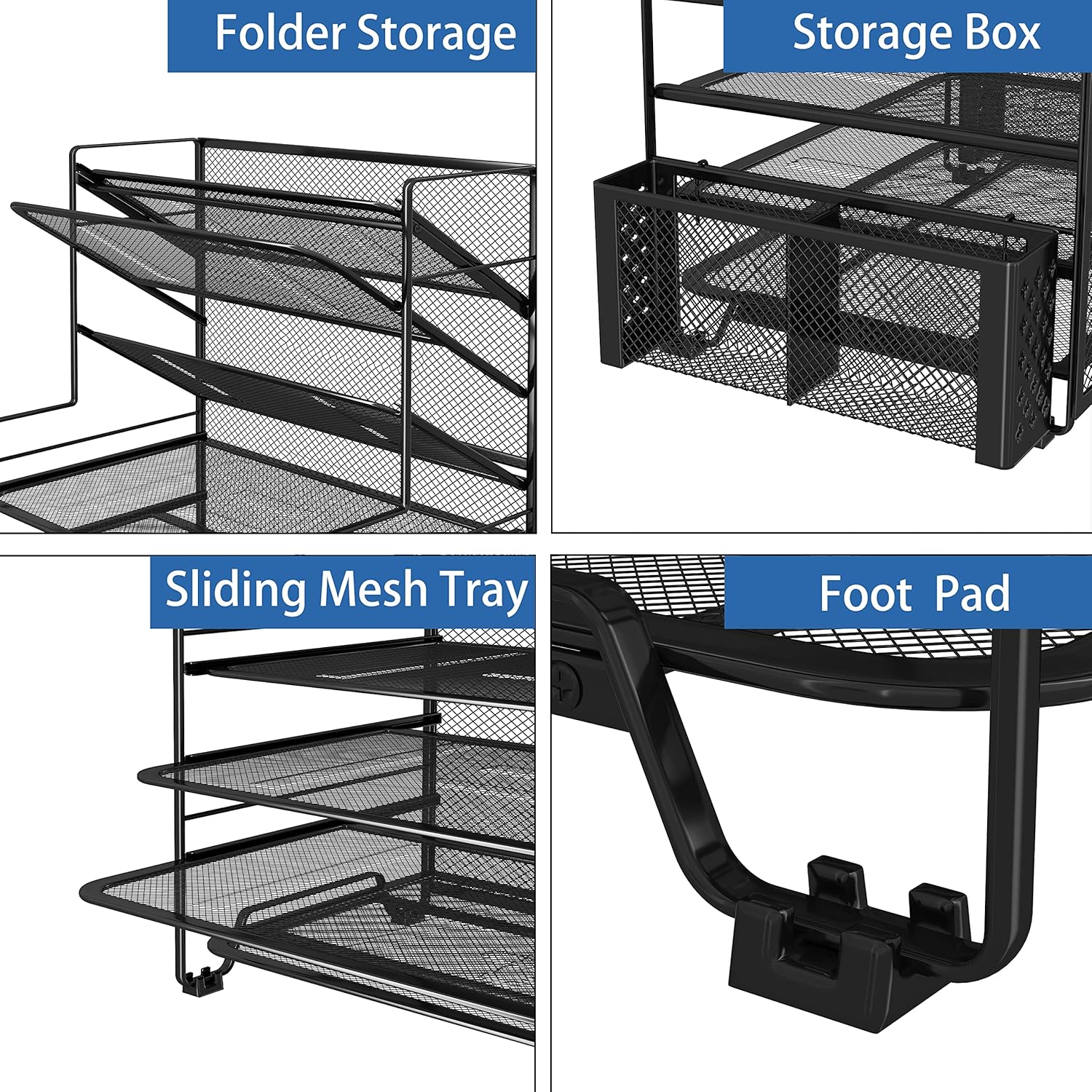 In addition to its versatile storage capabilities, this organizer comes with a metal hanging basket that is perfect for storing additional supplies or accessories. The black finish adds a modern touch to any office or home decor, making it both functional and stylish.