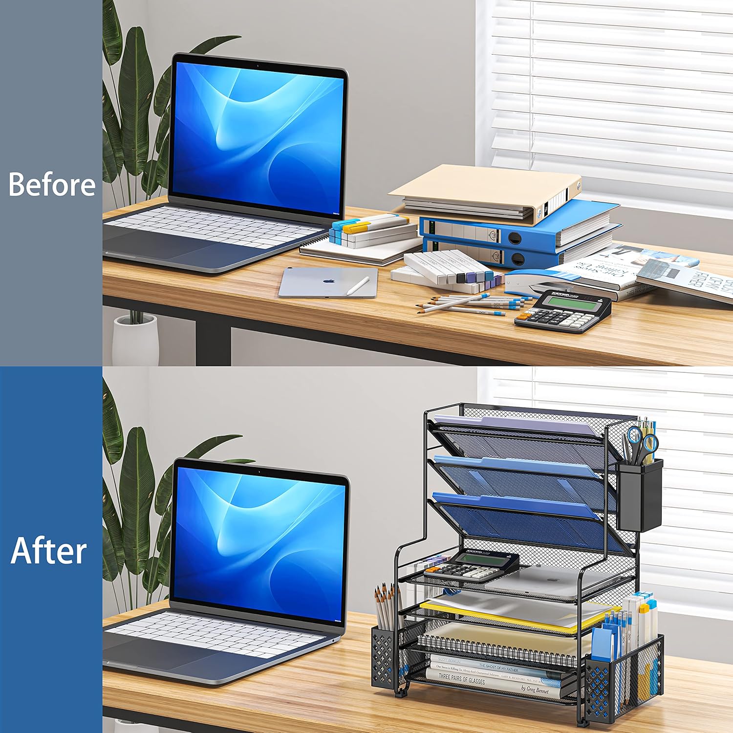 Featuring seven spacious tiers, this desk file organizer offers ample storage space to keep your papers, files, and folders organized and within reach. The letter tray design allows you to sort and separate your documents efficiently, while the built-in pen holder keeps your writing essentials handy.